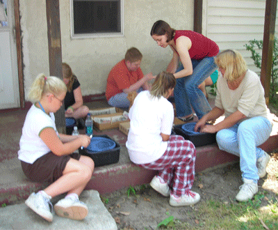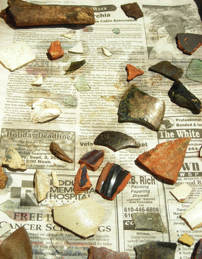 As you can see from the photo montage above, many people of all ages and abilities participate in Plank House digs. No matter what your level, there's always something interesting for you to do at the Plank House; from washing artifacts to sifting to actually taking trowel in hand and digging. We have found everything from pottery to bottles to jewelry to buttons. There are also lots of oyster shells and bones of animals that past residents of the Plank House ate for their supper. Every dig brings many surprises.